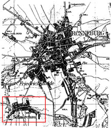 Lage der ersten Schächte des Bergbaubetriebes Schmirchau